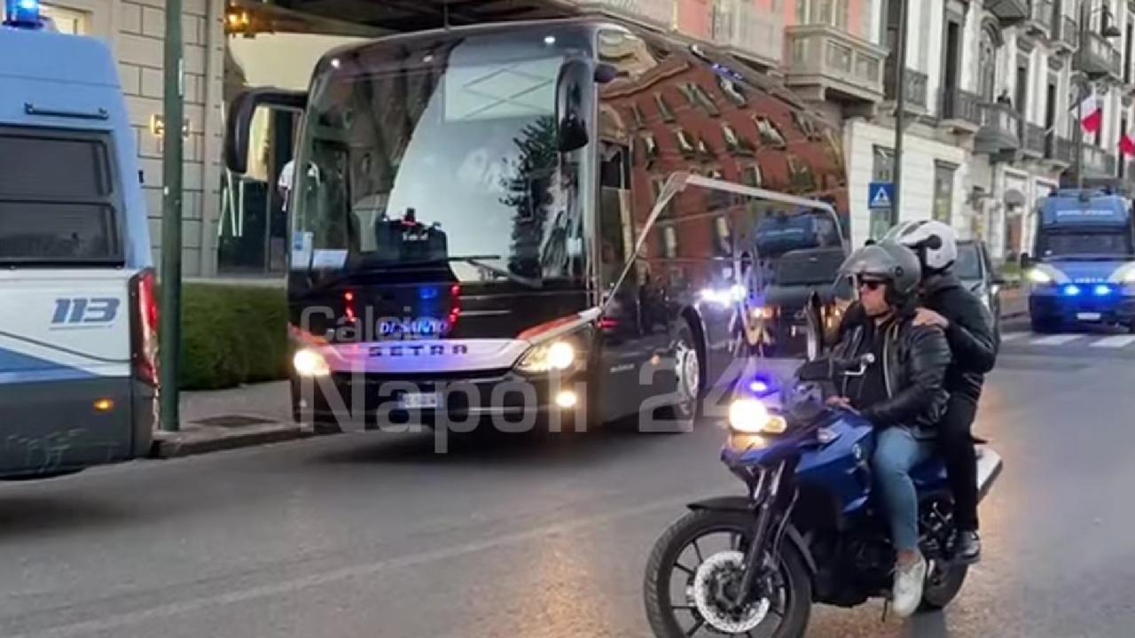Alle 18.45 ha inizio la sfida di Champions League tra Napoli ed Eintracht. La squadra tedesca ha appena abbandonato l'abergo per partire in direzione stadio Maradona.