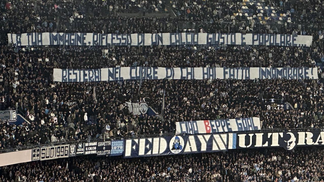 Gli ultras partenopei hanno esposto uno striscione chiaro in Curva B per onorare la memoria di Beppe Savoldi: