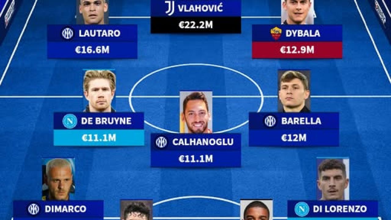 A centrocampo il Napoli è ben rappresentato da De Bruyne (11,1 milioni), insieme a Calhanoglu e Barella. In attacco i top player sono Vlahovic (22,2 milioni alla Juventus), Lautaro Martinez (16,6 milioni all’Inter) e Dybala (12,9 milioni alla Roma).