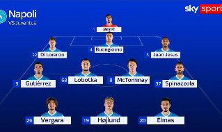 Sugli esterni agiranno Gutiérrez a destra e Spinazzola a sinistra. A centrocampo Lobotka e McTominay guideranno la manovra, mentre alle spalle di Højlund sono confermati Vergara ed Elmas. Dalla panchina sia Lukaku sia il nuovo acquisto Giovane, arrivato dal Verona.