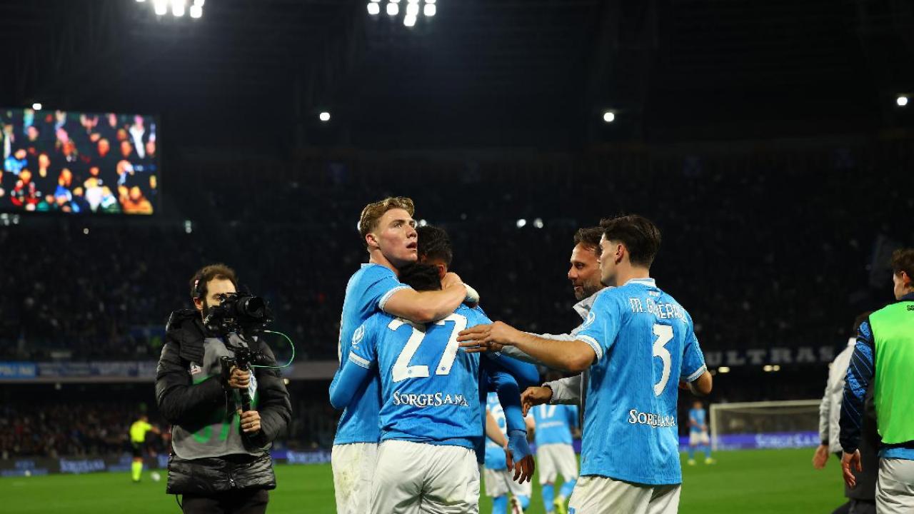 Spinazzola 6,5 - Sbaglia il passaggio che darà il via all’azione dello svantaggio, ma il Napoli si affida molto al suo piede per cercare uno sbocco che non sia Hojlund. Ha coraggio e viene premiato con la deviazione trova il pareggio, chiama Svilar alla gran parata ad inizio ripresa. (Dal 70’ Olivera SV)