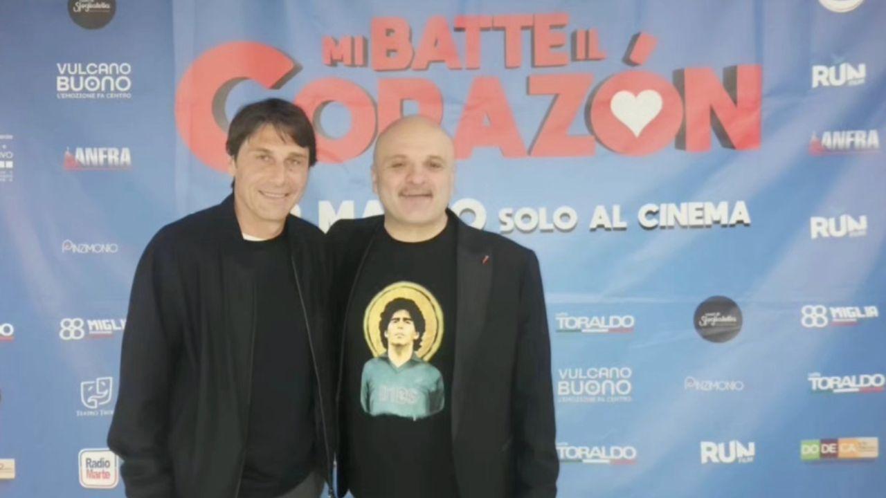 Conte con Peppe Iodice al cinema: il mister ha visto il film del comico partenopeo | FOTO