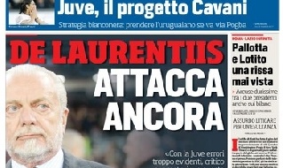 FOTO - La prima pagina del Corriere dello Sport: "De Laurentiis attacca ancora. Juve, il progetto Cavani"
