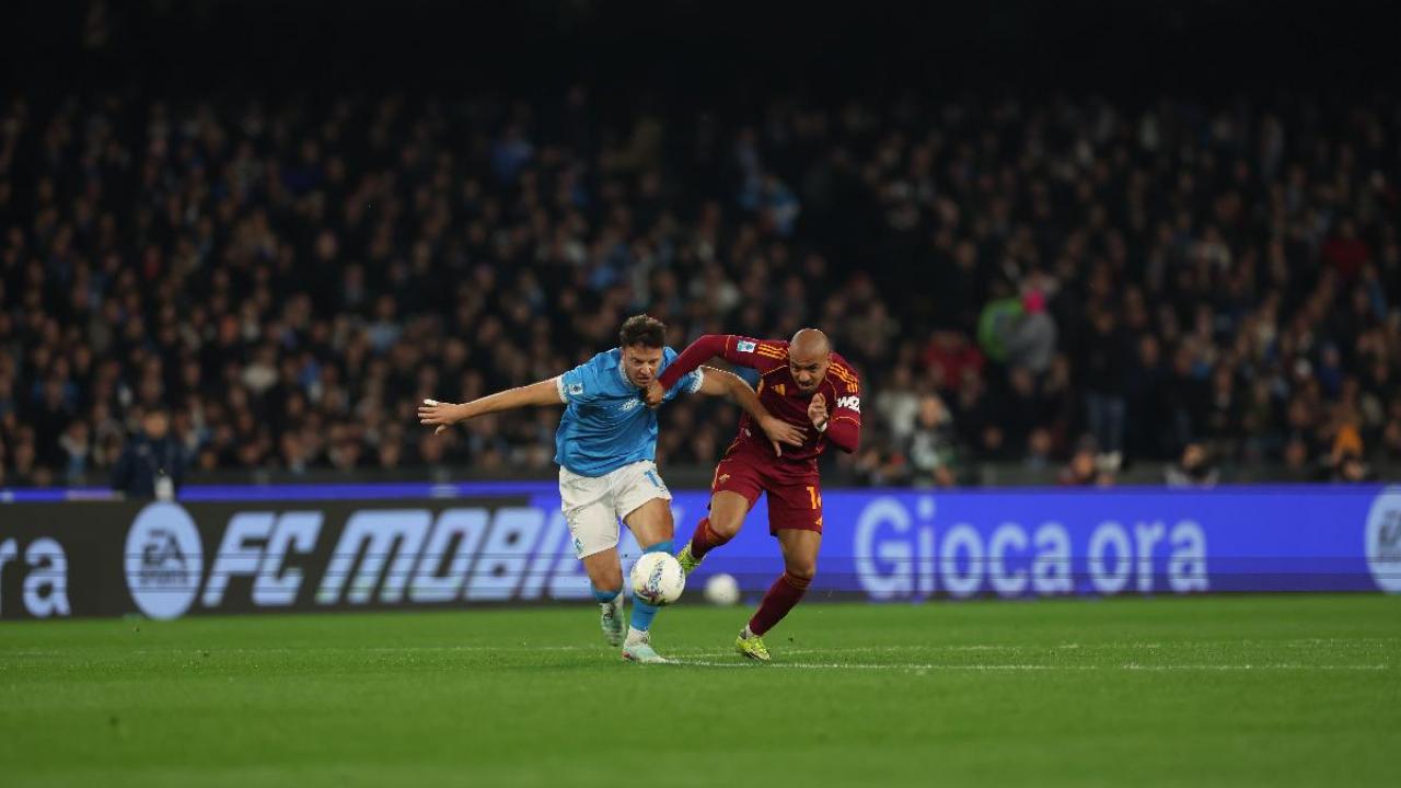 Amir Rrahmani si è infortunato presumibilmente durante la rincorsa su Wesley: ancor prima del contatto con il piede sinistro del giocatore giallorosso, il difensore del Napoli sembra fare una smorfia di dolore. Non a caso, non appena colpisce Wesley, Rrahmani crolla al suolo toccandosi la parte posteriore della coscia sinistra.
