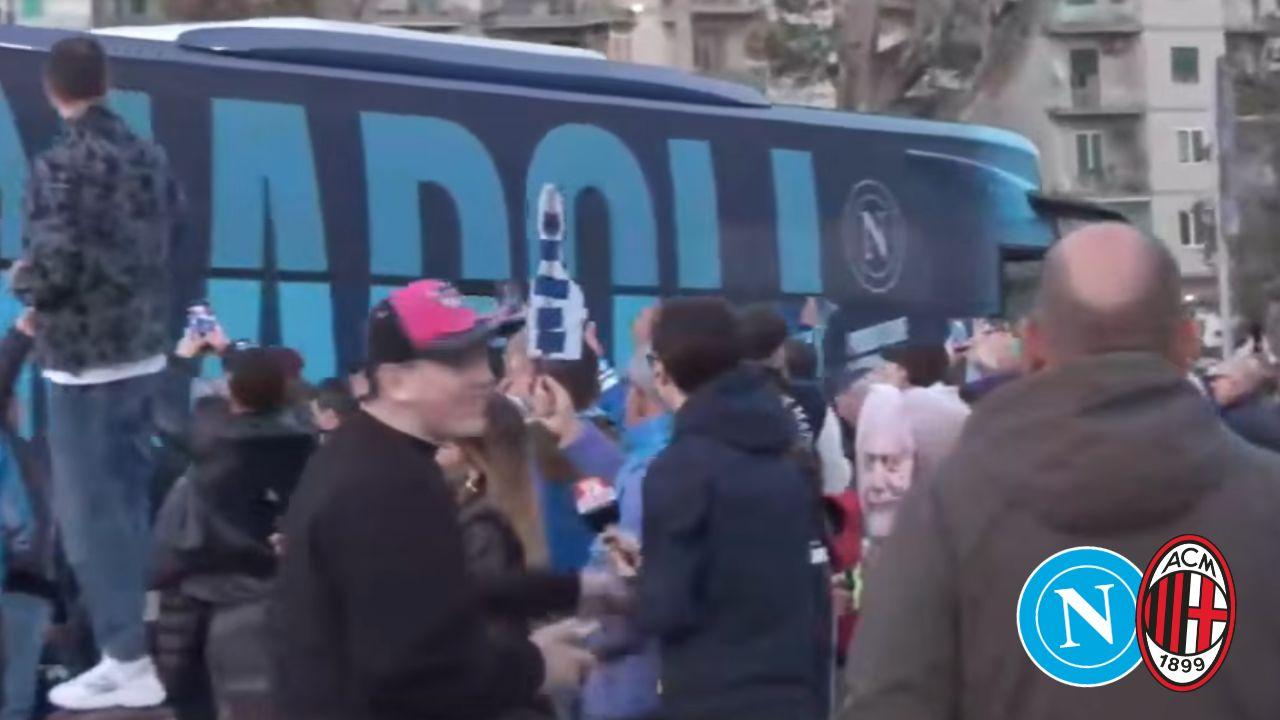 Napoli-Milan, la squadra è arrivata al Maradona! Grande accoglienza dei tifosi | VIDEO