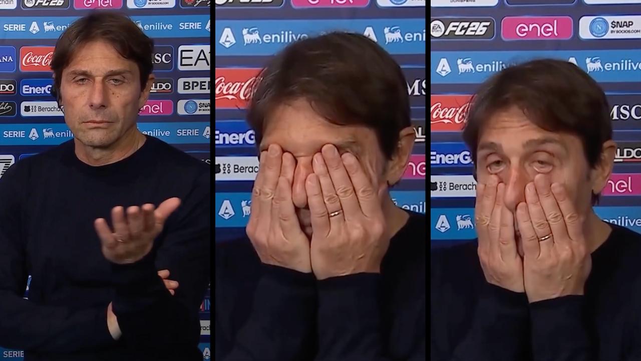 A quel punto, con un gesto di disperazione, porta le mani a coprirsi la faccia. Come racconta il conduttore Marco Russo, Conte "stava rivedendo le immagini in onda a DAZN e i numeri di Di Lorenzo, l'allenatore dice: 'Meh, persino il capitano, ma come è possibile'?!".