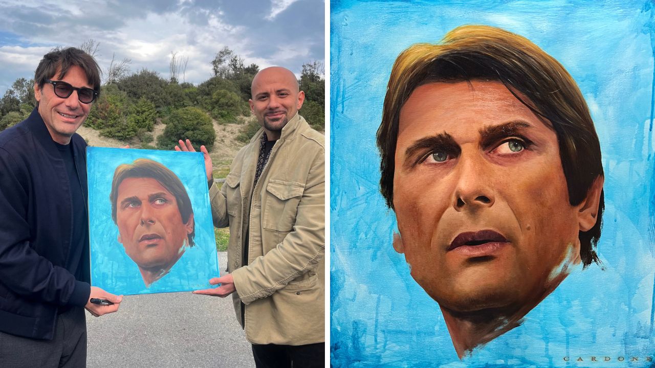 Regalo speciale per Antonio Conte: l'artista Emanuele Cardone gli dona un ritratto | FOTO