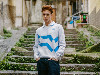 Ispirato a una delle maglie più iconiche della storia del club, questo retro jumper riprende elementi grafici che hanno segnato l’identità visiva del Napoli. Il fondo bianco è attraversato da due bande diagonali azzurre che definiscono il disegno del capo, mentre il logo SSC Napoli sul petto rafforza il legame con la tradizione.