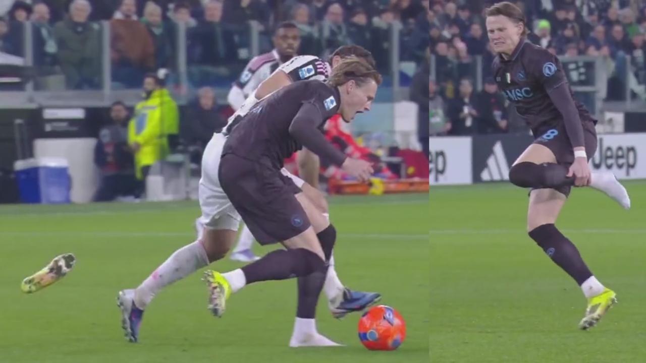 Ultime notizie SSC Napoli - Siamo al 5' di Juve-Napoli: fallo di Locatelli su McTominay, gli azzurri erano impegnati in una uscita dal basso. E l'intervento del centrocampista bianconero fa sì che McTominay perda la scarpetta. Ecco lo scatto: