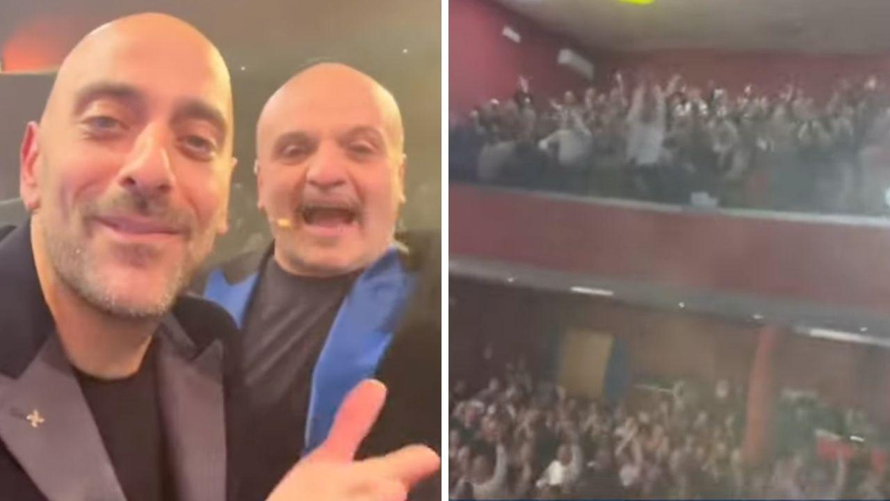 Peppe Iodice e Decibel Bellini festeggiano la Supercoppa in Teatro | VIDEO