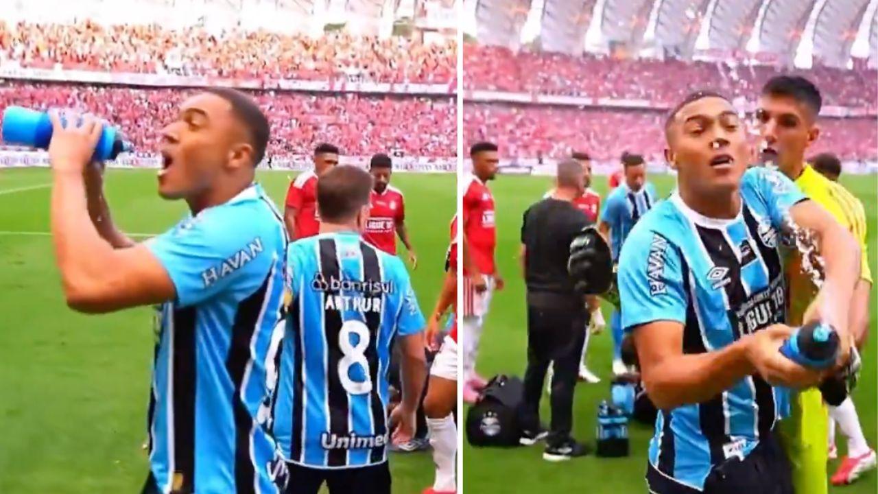 L'attaccante si è reso protagonista di una provocazione singolare ieri in campo: prende la borraccia per... fingere di bere ma in realtà spruzza in faccia agli avversari. E le parti erano solo al minuti 5 del primo tempo... alla fine il suo Grêmio ha vinto il titolo.