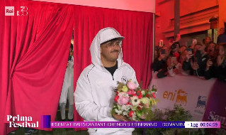 Geolier a Sanremo con la tuta del Napoli